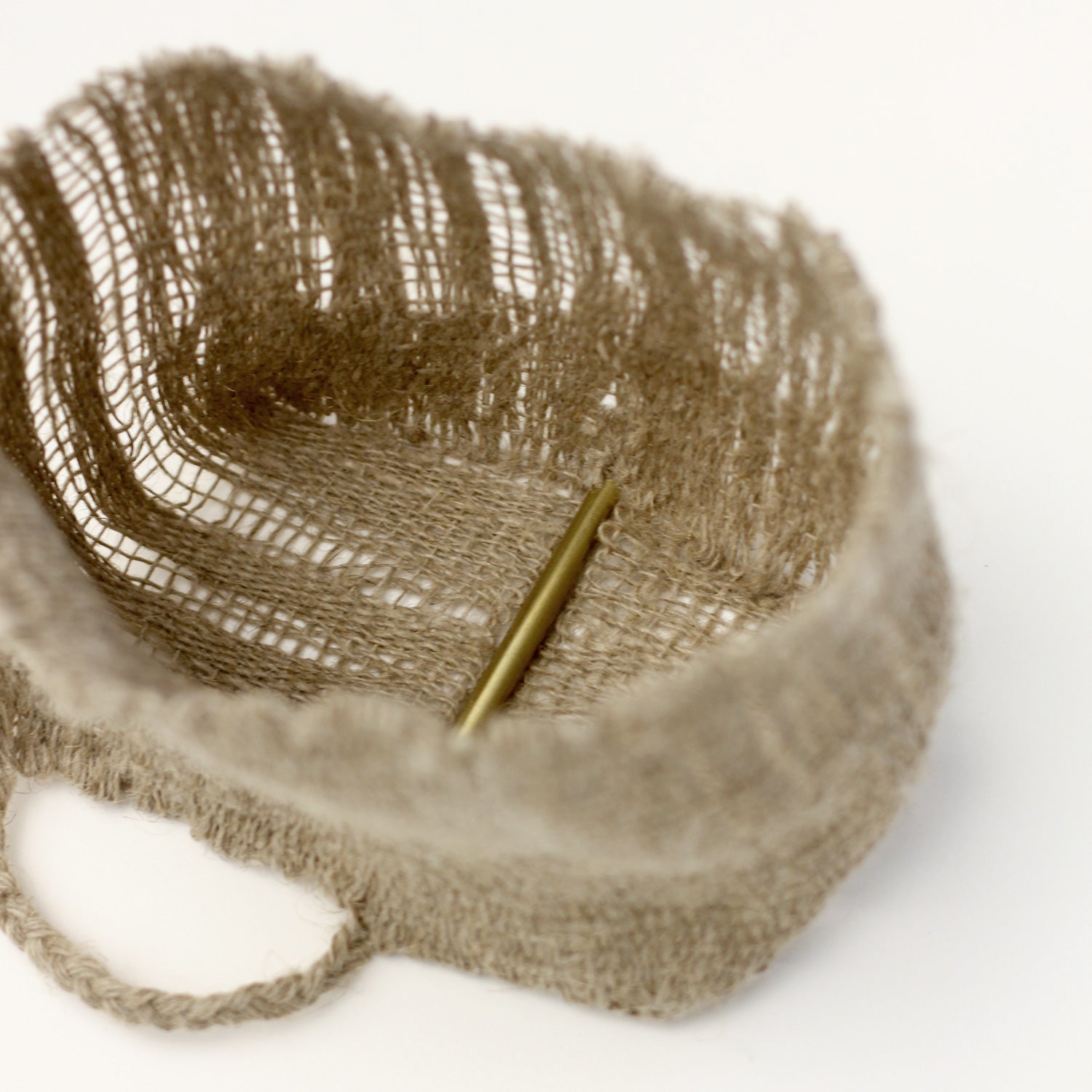 Materials: Secondhand linen and cotton, recycled rope and brass.