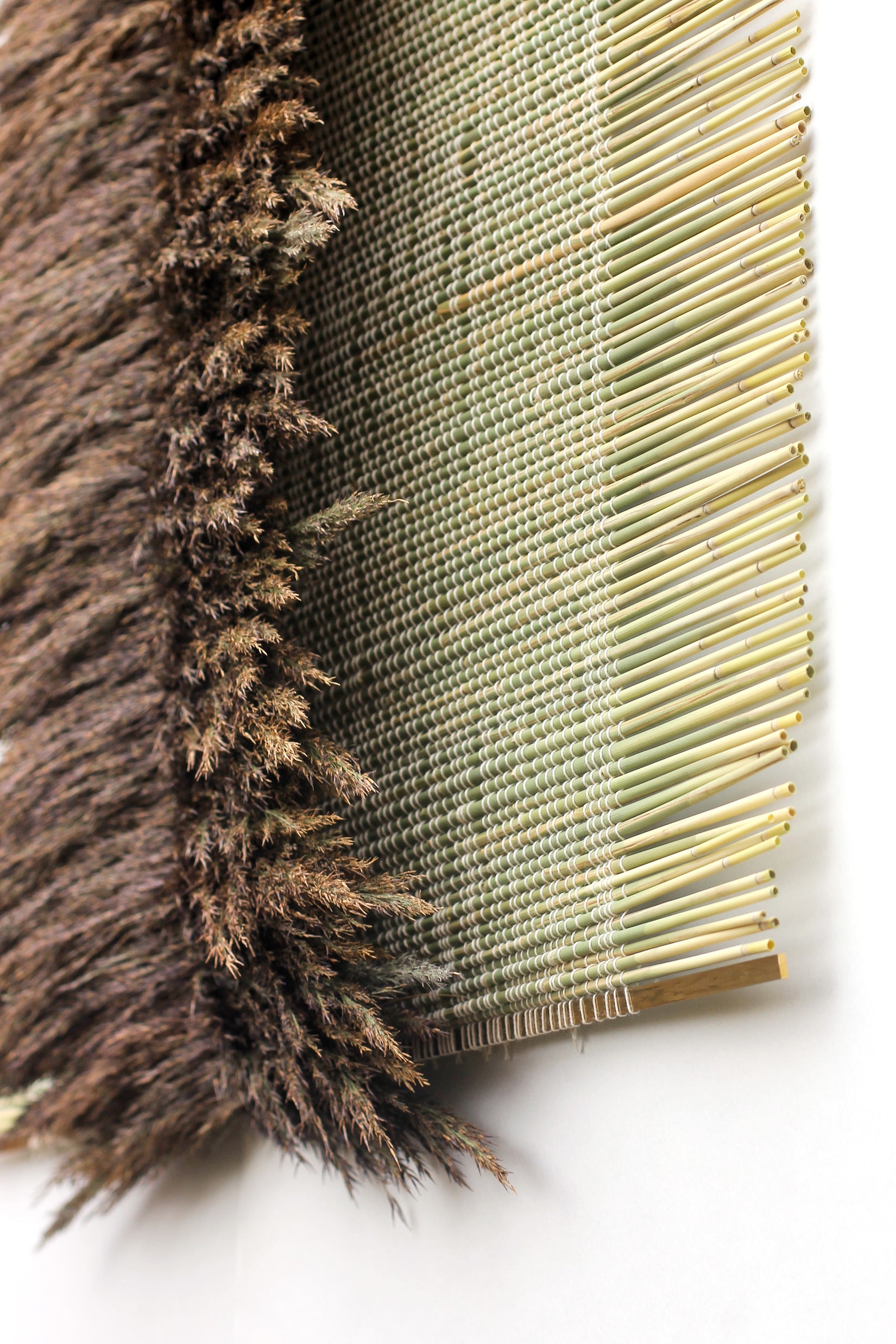 The works are woven of rye sourced from a nearby field by the city of Odder and reeds harvested on Kysing Beach. No Straw Shortener shows two ordinary crops and plants in a new and relevant context that brings us up close to something we often take for granted and see from a distance."
