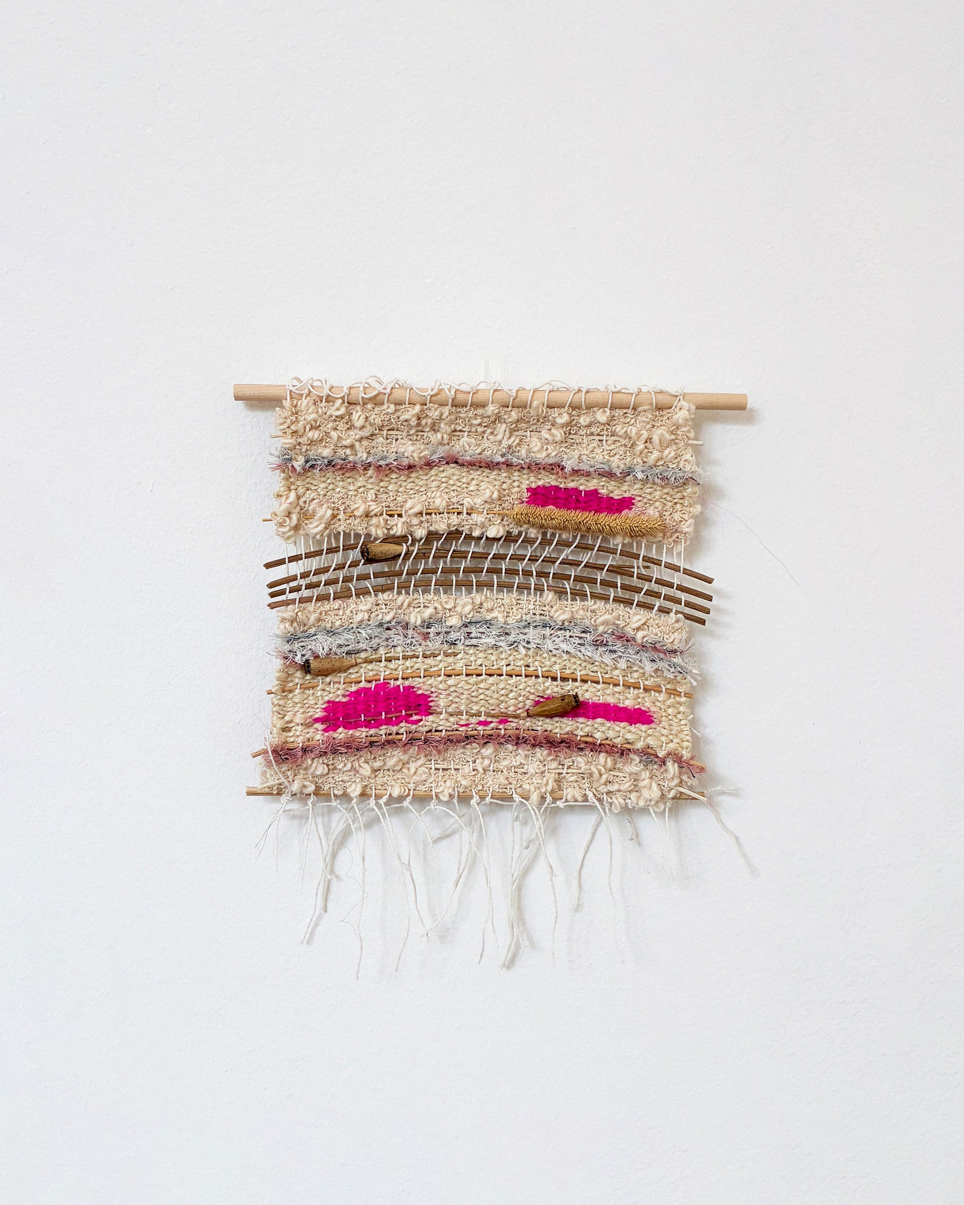 Christina Christensen er inspireret af alt det der er til overs, restgarner, overskudsmaterialer, og planter fra den danske natur, som hun omdanner til vævede kunstværker.